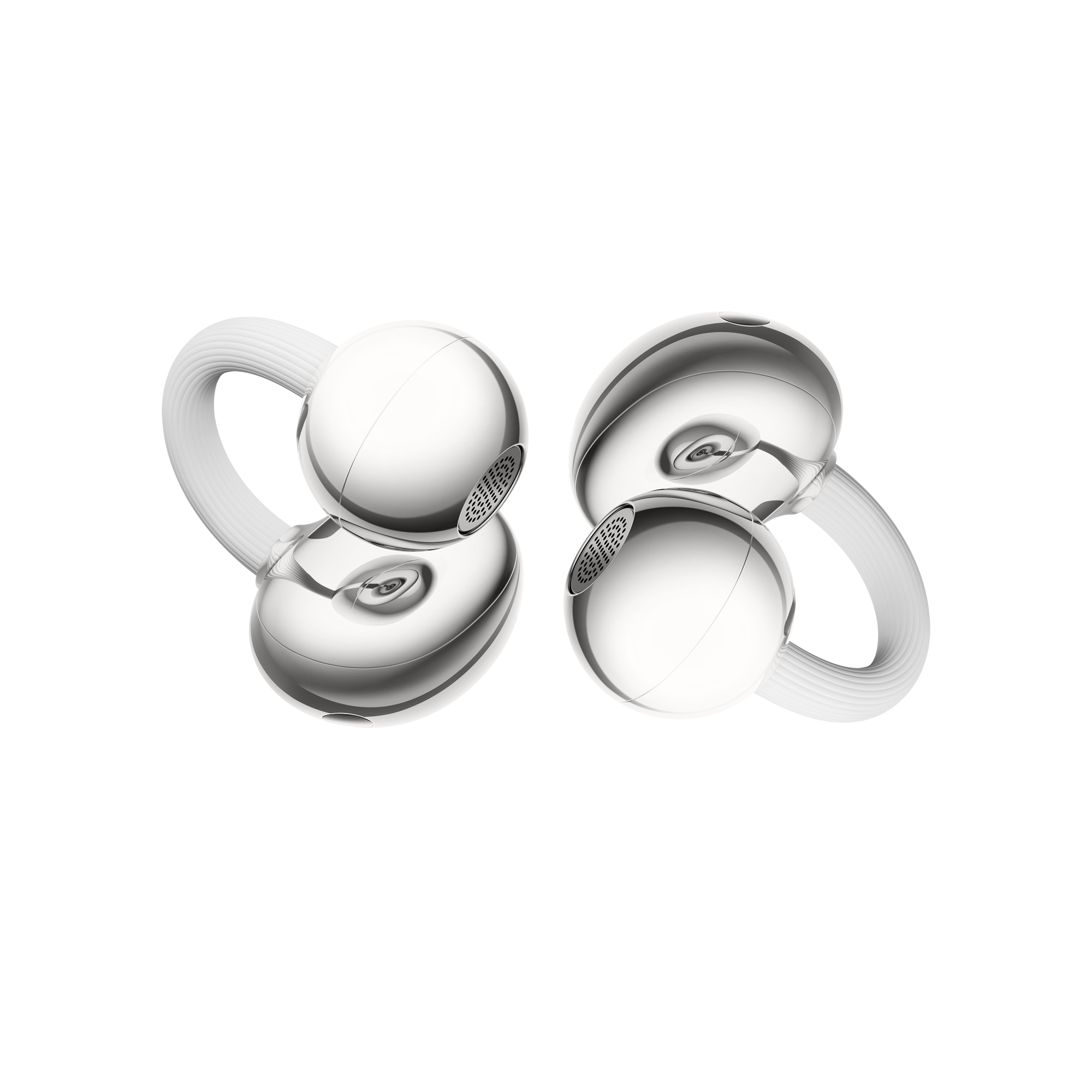 These earbuds feature a 25% softer C-bridge made of skin-friendly liquid silicone and a shape-memory alloy, weighing just 5.1 g each for a virtually weightless feel.