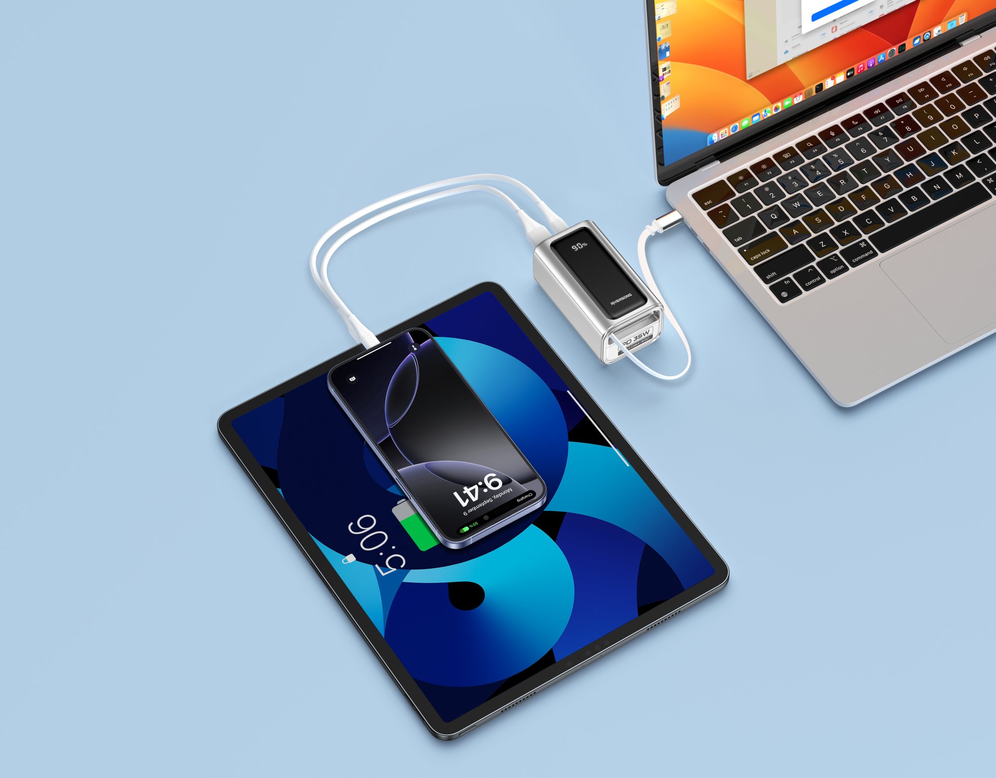 Connect up to three devices at once with the retractable Type-C cable, Type-C port, and USB-A port-perfect for phones, tablets, and laptops.
