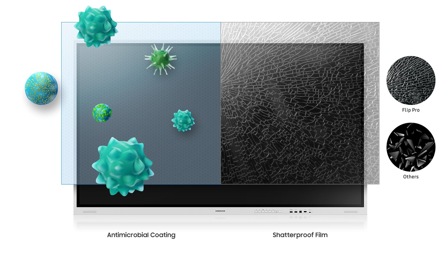 Samsung Flip Pro delivers peace of mind with a built-in Antimicrobial Coating which inhibits microbial growth.