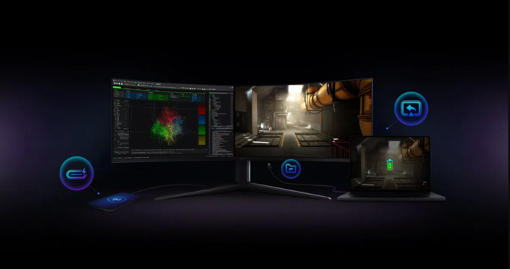 The 57“ Dual UHD resolution delivers a screen as wide as two UHD monitors, showcasing incredibly detailed and sharp visuals.