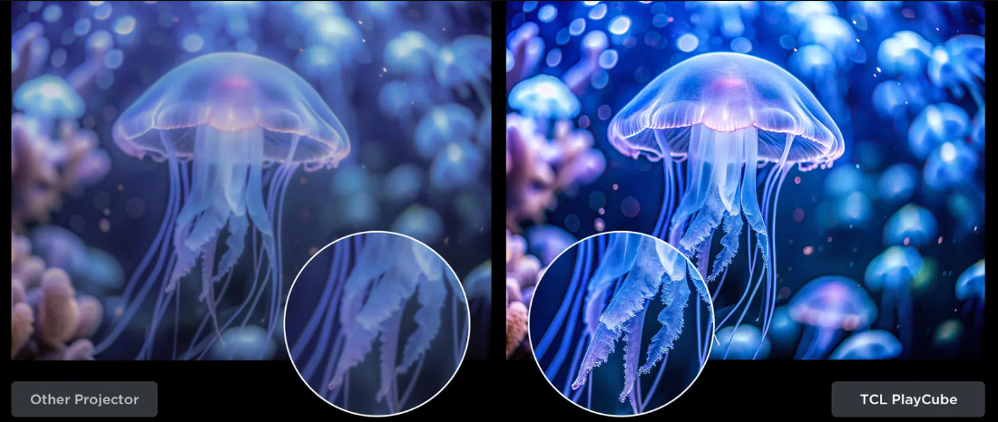 TCL PlayCube's built-in 66Wh battery-the largest in its class-powers up to 3 hours of seamless, cordless entertainment