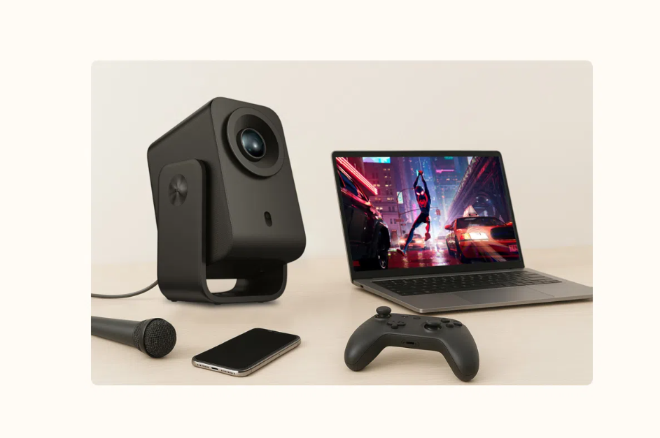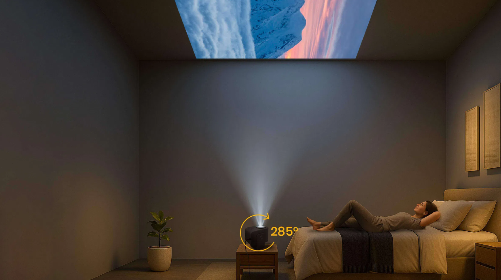 With the integrated handle and 285° adjustable gimbal, project seamlessly from any angle—even onto the ceiling.