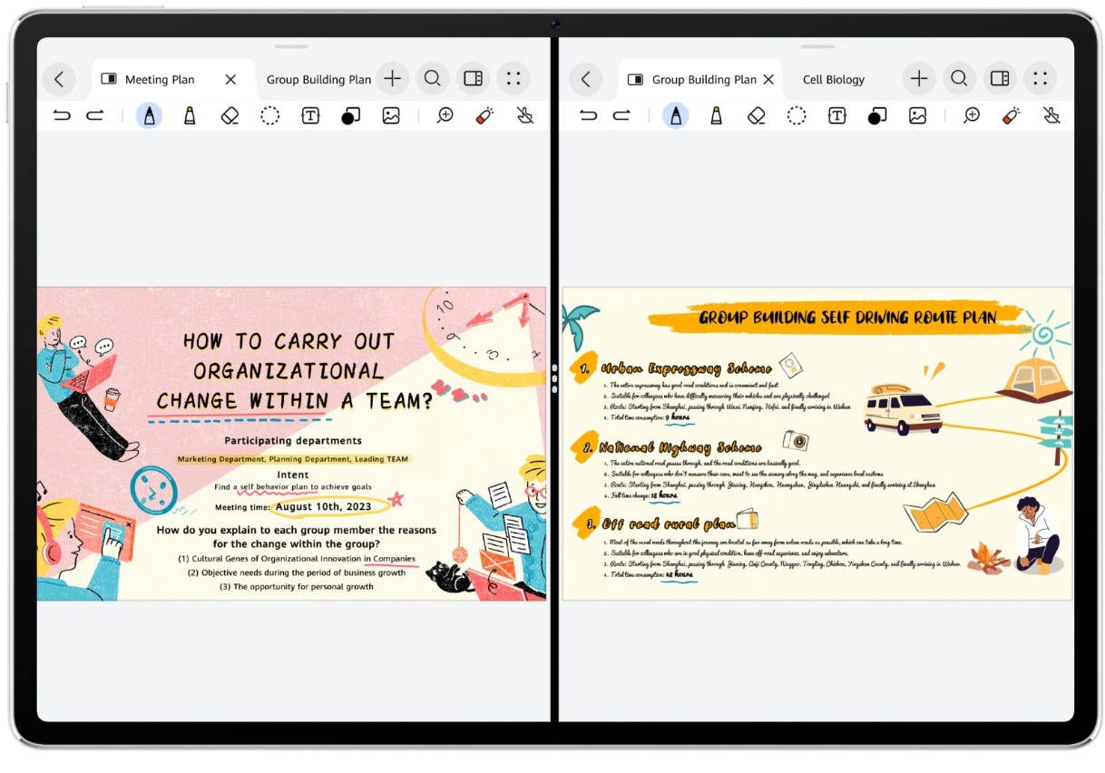 Χάρη στον Διαχωρισμό της οθόνης με ένα άγγιγμα, μπορείτε να ανοίγετε και να κρατάτε σημειώσεις δίπλα-δίπλα με το πάτημα μόνο ενός κουμπιού ή να ανοίγετε πολλές σημειώσεις ταυτόχρονα για να βρείτε ακριβώς αυτό που χρειάζεστε.