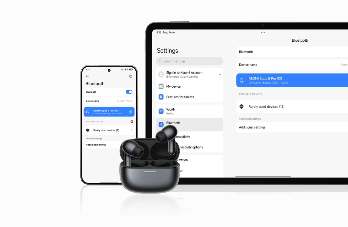 Τα REDMI Buds 8 Pro σάς επιτρέπουν να συνδέεστε ταυτόχρονα σε δύο διαφορετικές συσκευές, εξαλείφοντας την ταλαιπωρία της συνεχούς εναλλαγής για πιο εύκολη πολυδιεργασία.