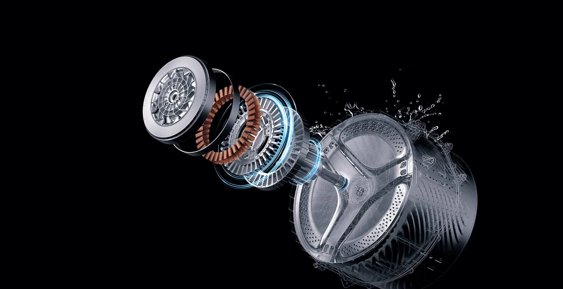 Το μοτέρ άμεσης κίνησης λειτουργεί χωρίς ιμάντα και είναι απευθείας συνδεδεμένο με τον κάδο.
